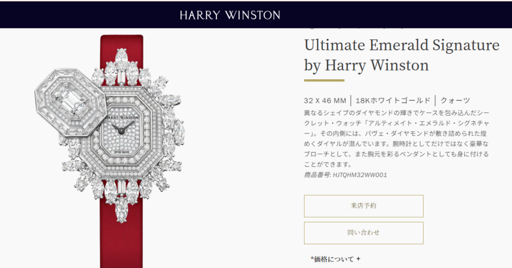 ハリーウィンストンの公式サイトには、価格表示はありませんでした。