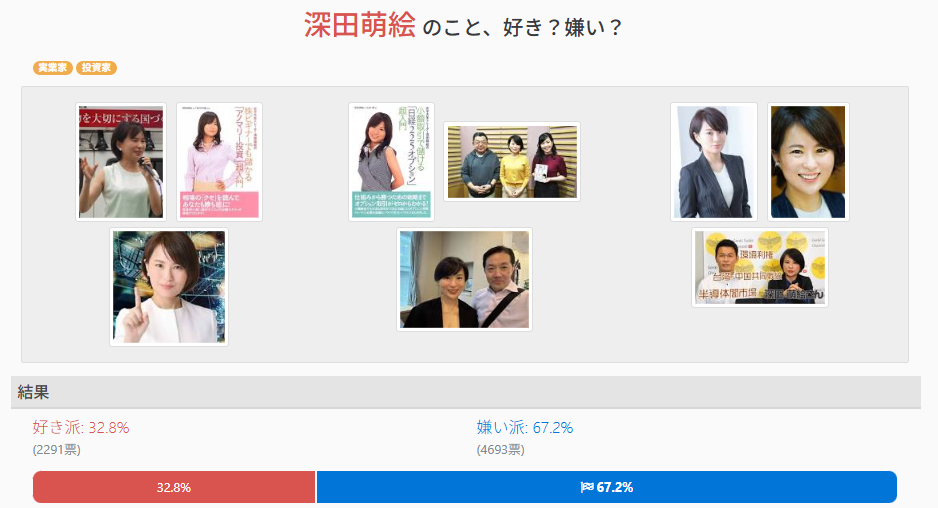 また、とあるサイトでは、深田萌絵さんを嫌いという人が過半数を占めていました。