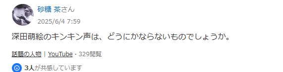 「深田萌絵のキンキン声は、どうにかならないものでしょうか」