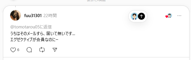 画像引用元https://www.threads.com/@fuu31301/post/DUlJ6IgEsCk/%E3%81%86%E3%81%A1%E3%81%AF%E3%81%9D%E3%81%AE%E3%83%A1%E3%83%BC%E3%83%AB%E3%81%99%E3%82%89%E5%B1%8A%E3%81%84%E3%81%A6%E7%84%A1%E3%81%84%E3%81%A7%E3%81%99%E3%82%A8%E3%82%B0%E3%82%BC%E3%82%AF%E3%83%86%E3%82%A3%E3%83%96%E3%81%8C%E4%BC%9A%E5%93%A1%E3%81%AA%E3%81%AE%E3%81%AB%E3%83%BC