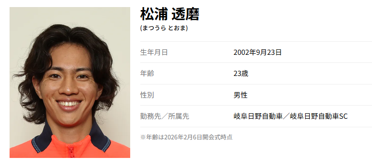 - 松浦透磨選手は、現在は「岐阜日野自動車スキークラブ」に所属