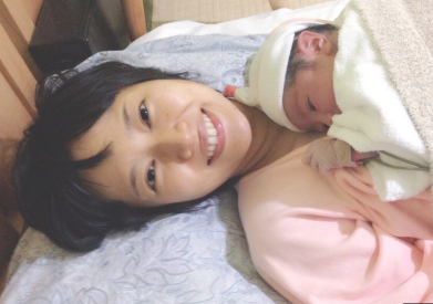 「昨夜30日の21時33分に、第一子となります女の子を無事に出産しました。体重は2988g。母子共に元気です。」
