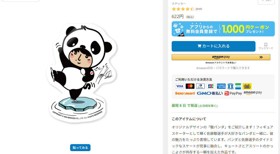 また、佐藤駿選手の公式キャラクターは「駿パンダ」なんですよ!